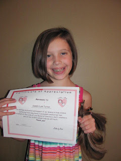 Our sweet Jaedin came to us months and months ago asking to get her hair cut off so she could donate it to Locks of Love. Of course! We were so proud of her thoughtfulness. She decided to grow it out through the summer and then she'd get it all cut off.
